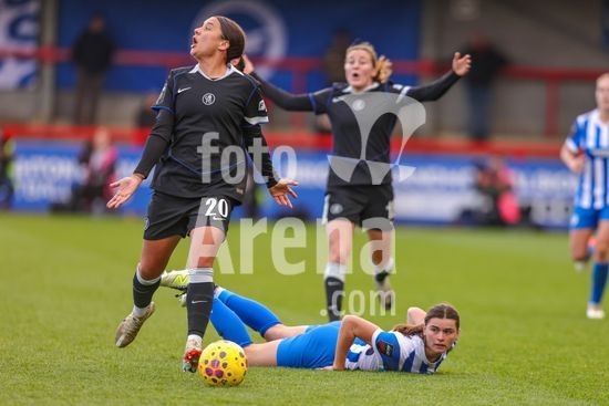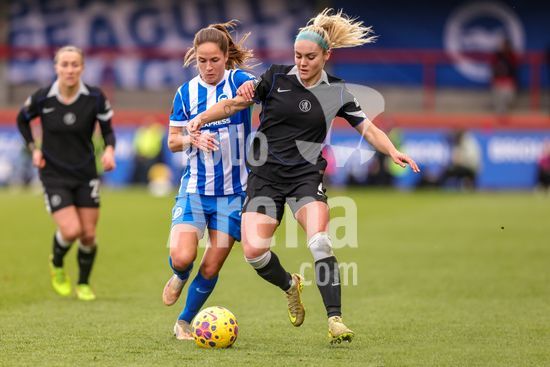 2859179 Madison Haley (21 Brighton & Hove Albion) e Ellie Carpenter (2 Chelsea) durante a partida da Barclays Women's Super League entre Brighton & Hove Albion Women e Chelsea Women, no Broadfields Stadium, em Crawley, Inglaterra. (Neil Holmes/SPP)