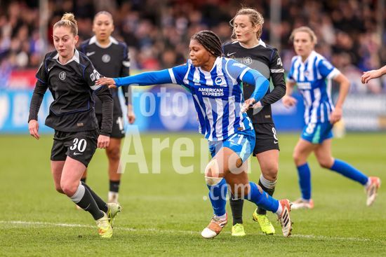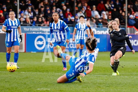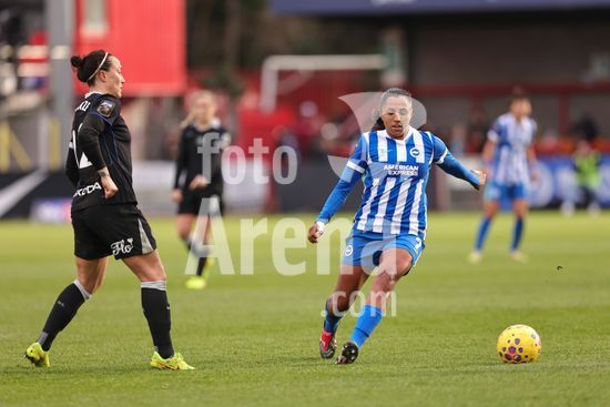 2859182 Madison Haley (21 Brighton & Hove Albion) e Keira Walsh (30 Chelsea) durante a partida da Barclays Women's Super League entre Brighton & Hove Albion Women e Chelsea Women, no Broadfields Stadium, em Crawley, Inglaterra. (Neil Holmes/SPP)