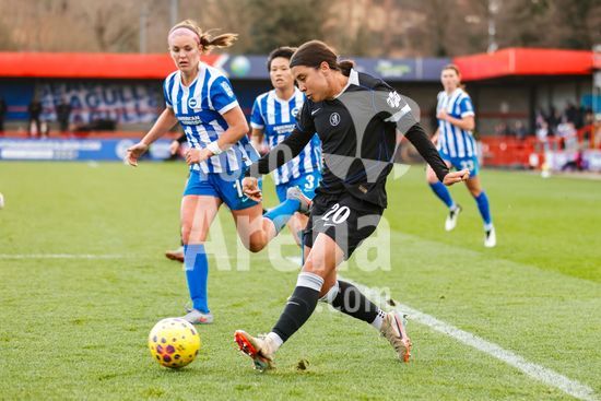 2859187 Erin Cuthbert (8 Chelsea) chuta durante a partida da Barclays Women's Super League entre Brighton & Hove Albion Women e Chelsea Women, no Broadfields Stadium, em Crawley, Inglaterra. (Neil Holmes/SPP)
