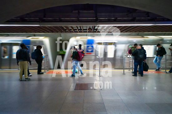2758589 Linha Azul, Estação Armênia. Metrô. Sombra. Transporte metroviário. Vista de passageiro na plataforma. Estação do metrô de superfície na Zona Norte.