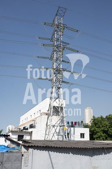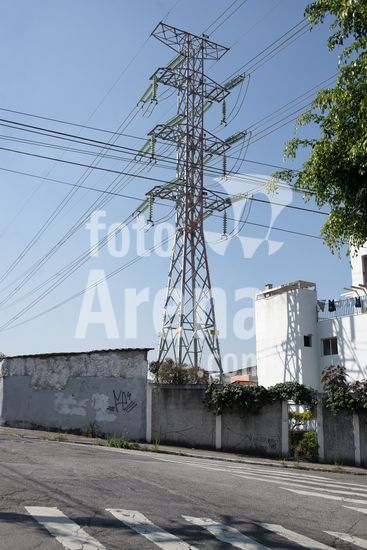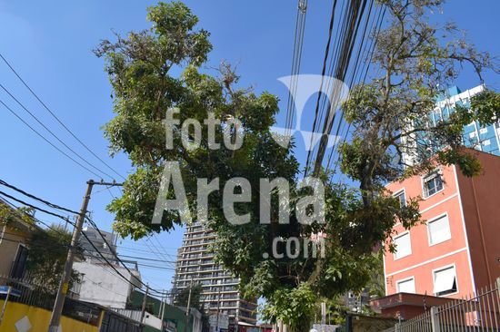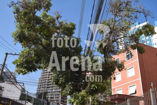 2774730 Galhos de árvore desviam de fios de alta tensão em rua.Adaptação. Natureza. Na foto, árvore com fios passando por dentro da copa.