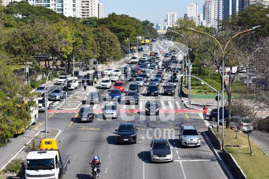 2759213 Veículo oficial da Companhia de Engenharia de Tráfego CET na Avenida Paulista. Viatura. CET. Na foto, carro da CET trabalha no apoio ao trânsito antes da Parada LGBT.