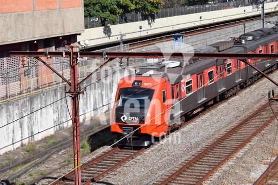 2774860 Vista de cima de trem da CPTM Companhia Paulista de Trens Metropolitanos na estação Carrão. Linha 11 Coral. Zona Leste. Trem. Ferrovia. Transporte coletivo.