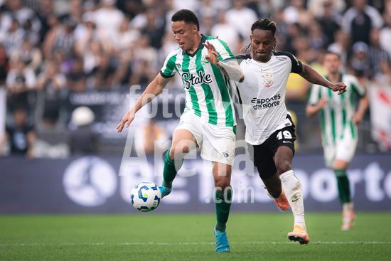2855823 Charles do Corinthians (Esquerda) e Bernardo do Juventude (Direita) disputam a bola, durante partida entre Corinthians x Juventude, válida pela trigésima oitava rodada do Campeonato Brasileiro de Futebol 2025, neste domingo (7), na Neo Química Arena, SP.