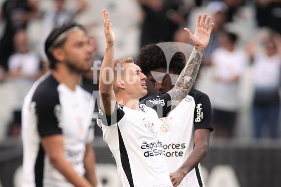 2856144 Dieguinho e Mandaca durante a partida entre Corinthians x Juventude realizada na Neo Química Arena em São Paulo, SP. O jogo é válido pela 38ª rodada do Brasileirão 2025.