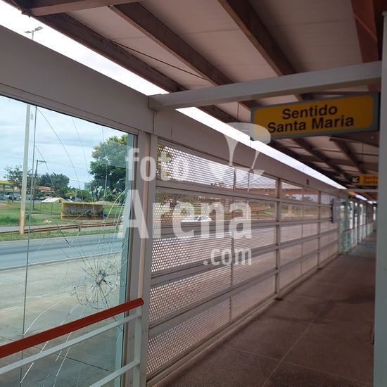 2848669 Vidro danificado na estação Santos Dumont do BRT, em Brasília, no Distrito Federal.