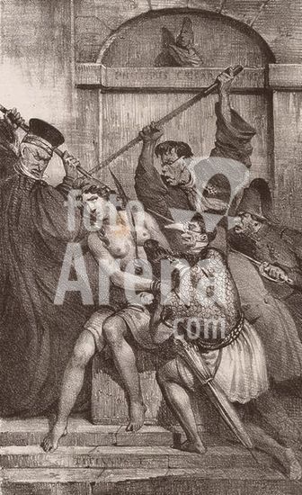 akg215651 Kingdom of July (Reign of French King Louis Philippe, 1830-1848). "Imitation libre d'un tableau du Titian" (Caricature: Louis Philippe, Civil Servants, police and Judicial systems scourge the Republic). Lithograph, c. 1830-35, by Charles Joseph Travies de Villers (1804-1859). From: La Caricature, No. 169. Berlin, Sammlung Archiv für Kunst und Geschichte. Museum: Berlin, Sammlung Archiv für Kunst und Geschichte.