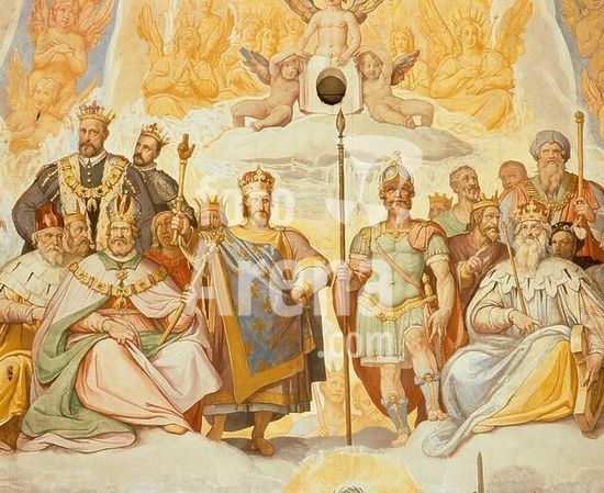akg255351 Florence - Firenze (Tuscany, Italy), Cathedral S.Maria del Fiore, cupola. "The Last Judgement". Detail from the blessed: emperor, kings and princes (with portraits of Francis I of France and Cosimo I de'Medici). Fresco, begun in 1572 by Giorgio Vasari. (1511-1574), completed 1579 by Federico Zuccari (c. 1540-1609).