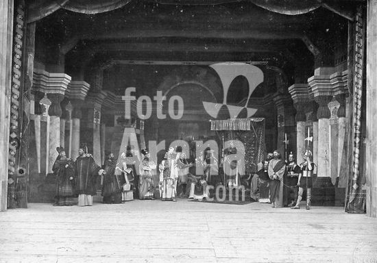 akg285378 Oberammergau (Oberbayern), Oberammergauer Passionsspiel. (seit 1634 in zehnjährigem Abstand aufgeführt von Laiendarstellern). Passionsspiele 1890. Szenenbild: Christus vor Herodes. Photographie (Stockmann), Oberammergau. (Verlag der gemeindlich concessionierten Kunst- und Verlagsanstalt) 1890. Berlin, Sammlung Archiv für Kunst und Geschichte. Museum: Berlin, Sammlung Archiv für Kunst und Geschichte.
