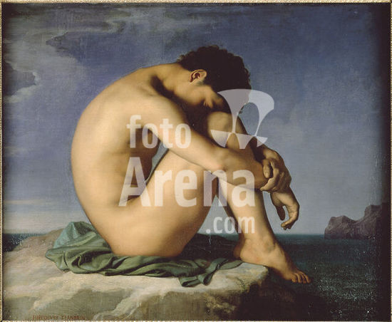 akg315276 Flandrin, Hyppolite 1809-1864. "Jeune homme nu assis sur un rocher. Figure d'etude" (Jeune homme nu assis au bord de la mer; nude study of a young man / sitting by the sea), 1835/36. Oil on canvas, 98 × 124cm. Paris, Musée du Louvre. Museum: Paris, Musée Du Louvre. Author: HIPPOLYTE FLANDRIN.