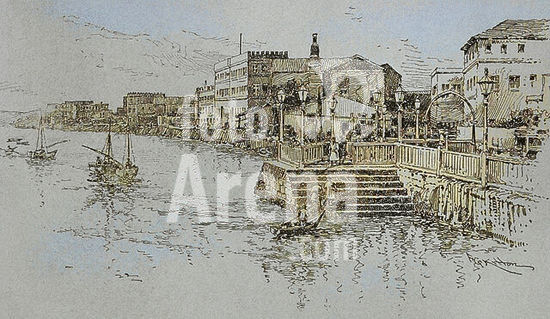 alb23634591 Africa, 19th century. Zanzibar, Tanzania. Landing-place. Photogravure. Colorised.