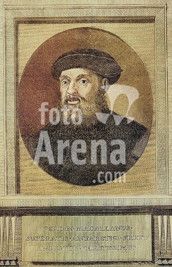 alb23634606 Ferdinand Magellan (1480-1521). Explorer of Portuguese origin. Portrait. Facsimile after a copper engraving by Ferdinand Selma (1752-1810) in 1788. Colorised.