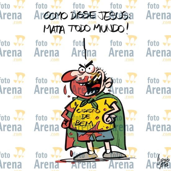 NAN2511242106 NANDO MOTTA, CRÍTICA SOCIAL E POLÍTICA, REDES SOCIAIS, 30/10/2025. Patriota.Representação de homem vestido de verde e amarelo coberto de sangue.Como disse Jesus: mata todo mundo!